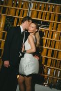 The officiant was an equally unconventional choice. “My boss – who’s also a close friend – officiated us. He braided his hair, wore a tallit and everyone kept calling him rabbi. He kept saying, ‘I’m not actually a rabbi, I’m just winging it.’ Everyone was cracking up.” Then came the hora: “My foot hit a light. It was chaos.” Continuing the party, celebrations moved to BeyBey with the bride opting for a sparklier, sexier look from Miami-fave make-up artist Javier Martinez to complement her third and final dress of the weekend: a bridal white Alaïa mini with a puff-ball skirt, purchased in Paris.